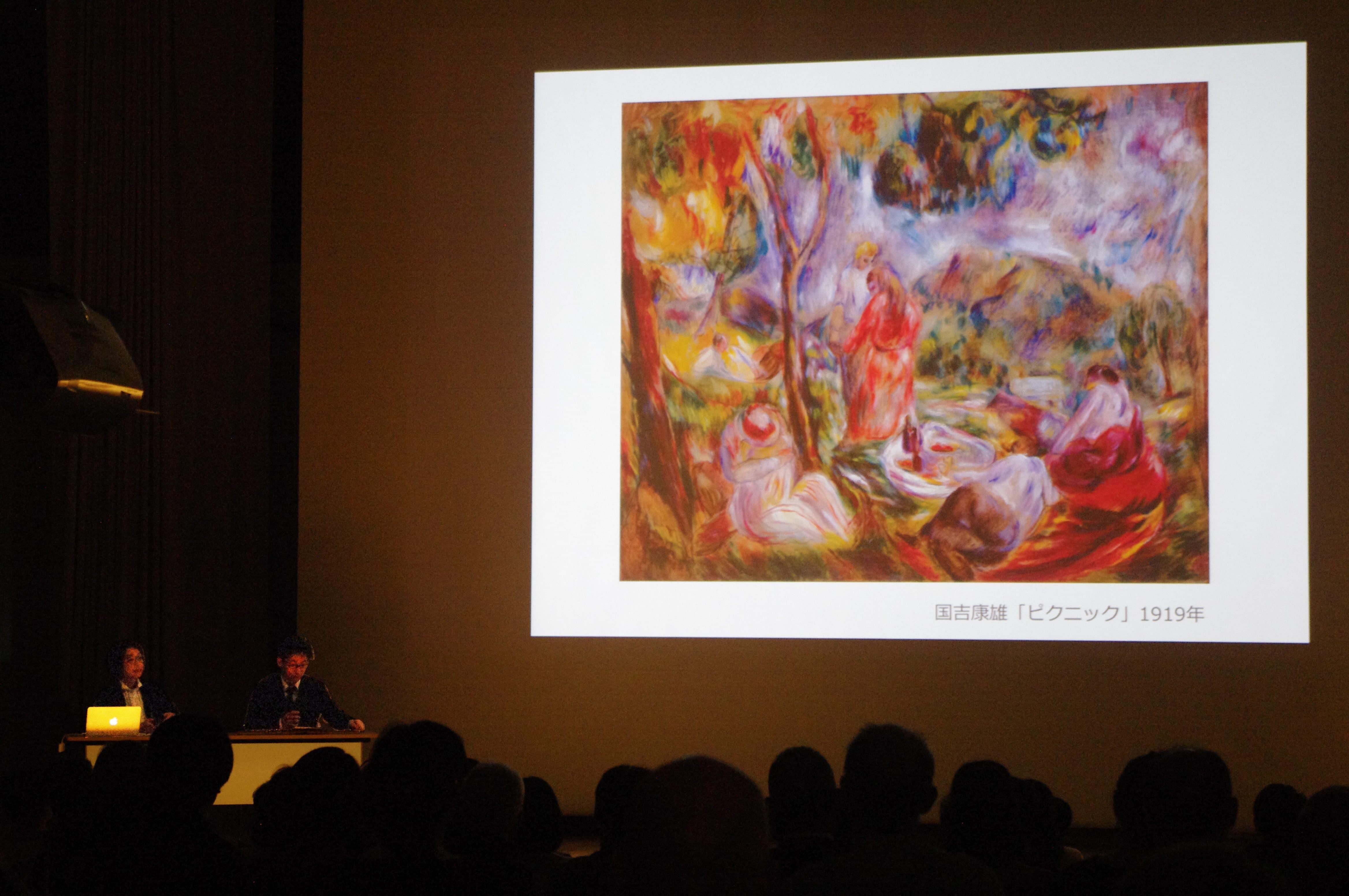 演奏の前に、岡山大学大学院教育学研究科の音楽の専門家として、諸田大輔准教授とアートの専門家として、直島の美術館施設の設置に携わった江原久美子氏が対談を実施しました。対談は演奏会をより楽しむために、音楽とアート、双方の視点から、「印象主義」と呼ばれる国吉が活躍する以前の芸術運動について解説をしました。