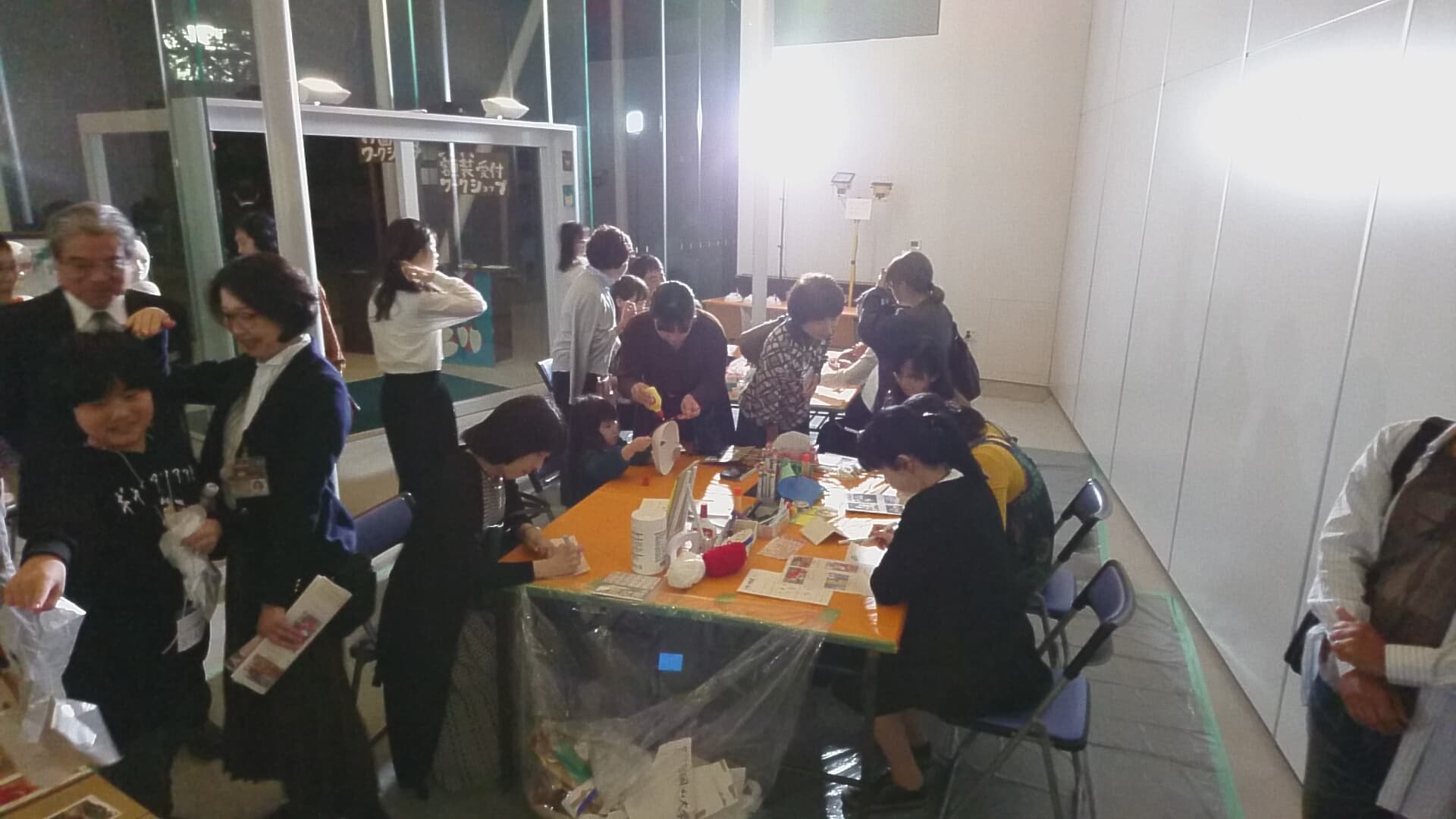 国吉作品から着想を得た工作ワークショップスペースを設置しました。ミスターエース展で実施したワークショップに加え、今回の国吉祭のために、教育学部美術専攻の学生が、新たに「ランプシェード」を作るワークショップを考案しました。このワークショップの特徴は、和紙に描かれた国吉作品の作成したランプシェード線画をマジックペンなどで好きな色を塗り、参加者自身が内側から光を当てることで、国吉作品の特徴である作品の「色遣い」を楽しめることです。工作ワークショップの参加者は25名で、当初、1度に8名対応が限度だったワークショップブースはすぐに満席となり、増席をして対応いたしました。参加者からは、「手を動かす工作ワークショップが楽しい」、「昔を思い出すようだ」という感想が多く寄せられ、好評でしたが、ブースの設置時間がワークショップブース17:00〜19:30と制限されたため、演奏会への参加者は、最大1時間となり、ワークショップ参加者は限られたものとなりました。
