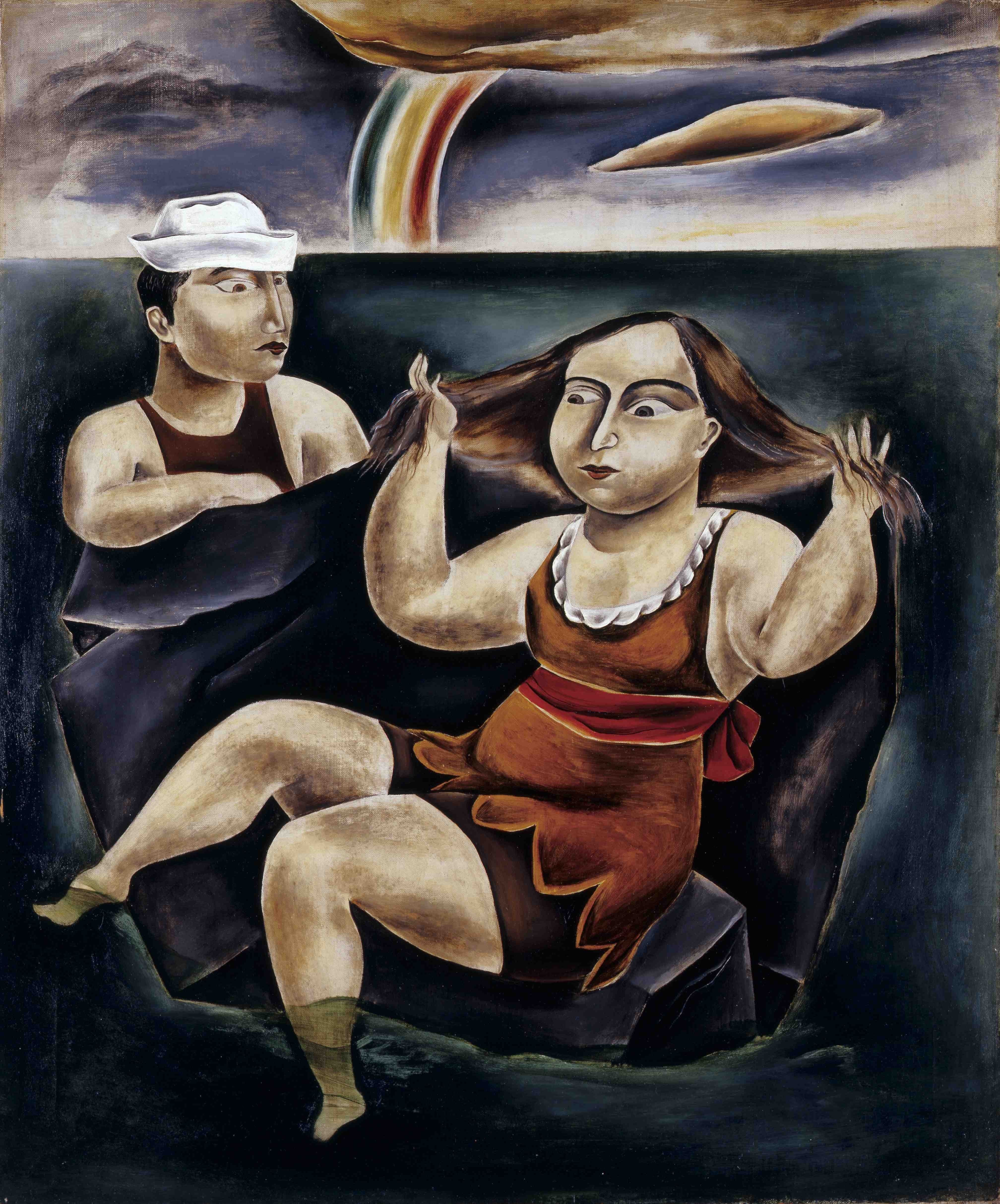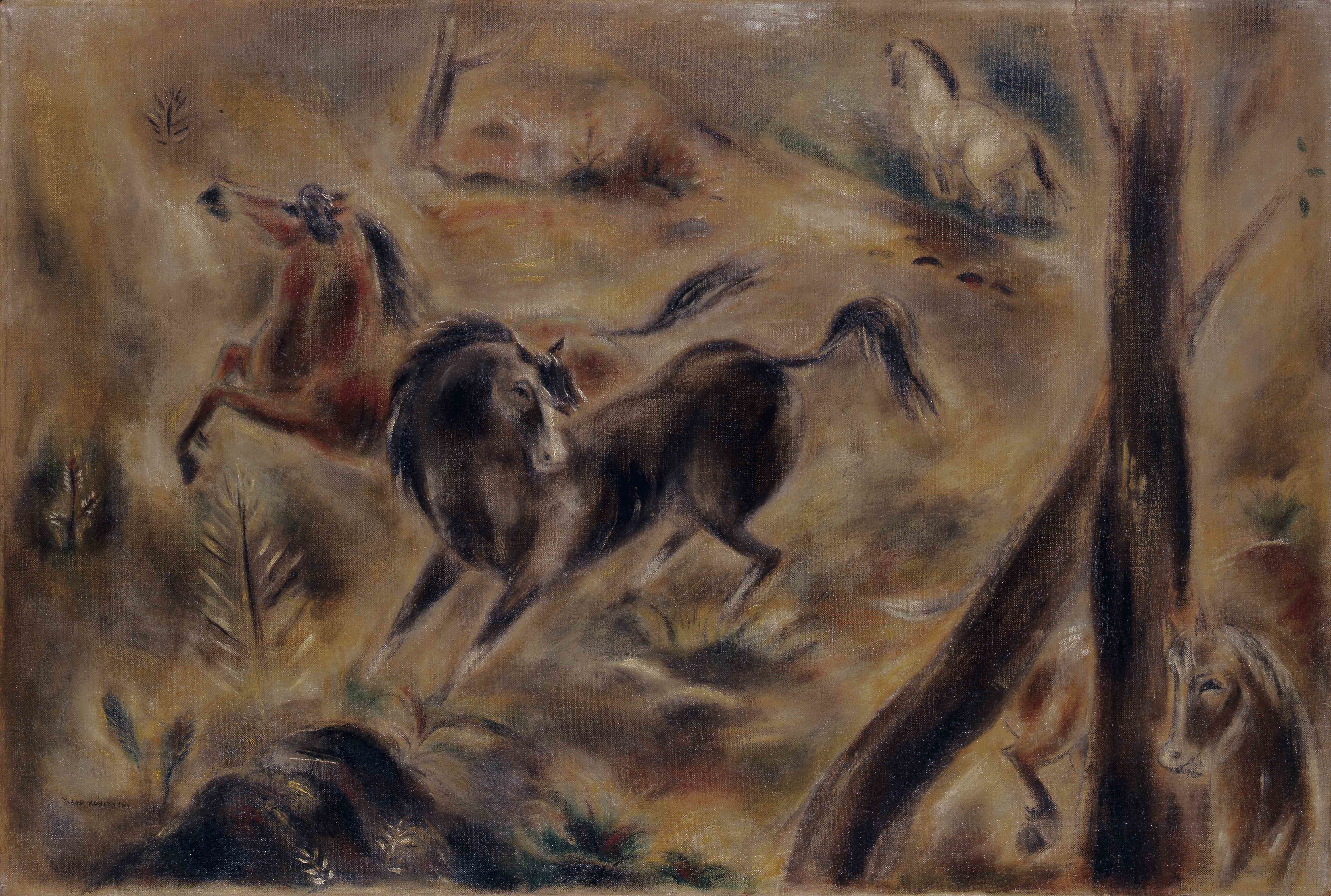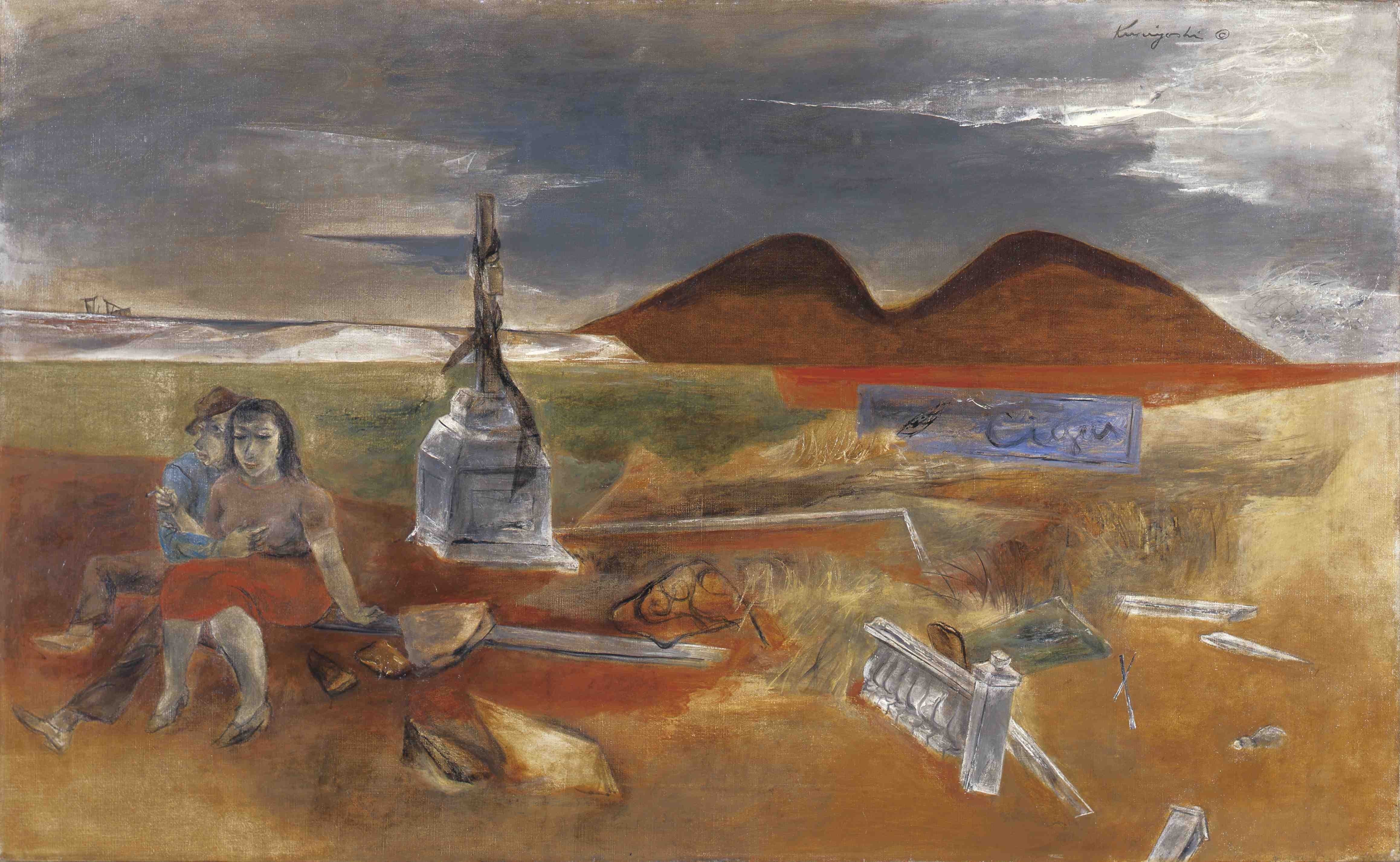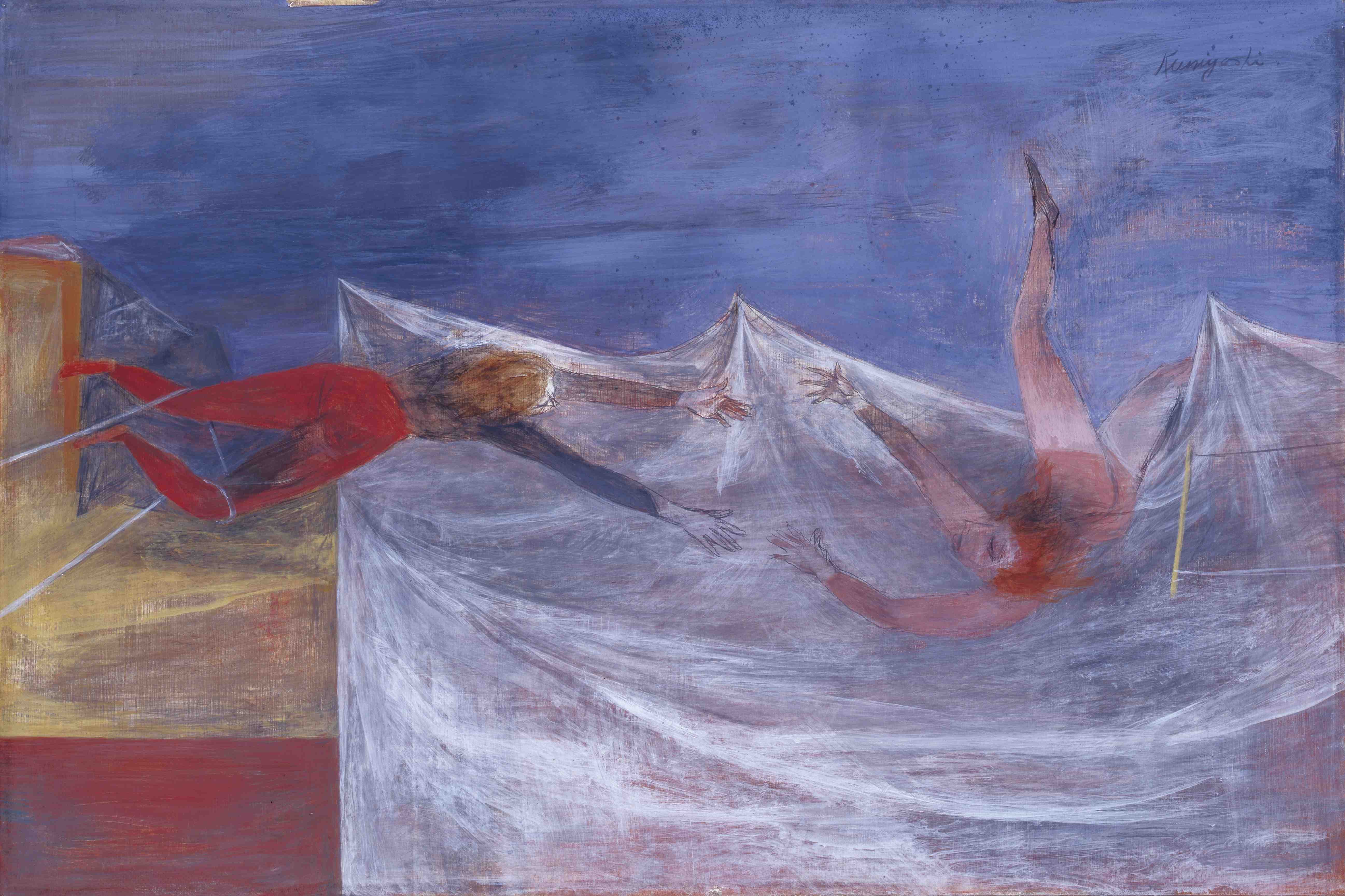 アルノルト・シェーンベルク(1874ー1951)は、調性のない音楽を思索し、十二音技法を確立した音楽史を語る上で欠かすことのできない作曲家です。シェーンベルグはユダヤ人として迫害され、アメリカへ亡命します。渡米後は、アメリカの音楽教育に積極的に取り組み、ジョン・ケージ(1912ー1992)など、多くの現代音楽家を育てた《安眠を妨げる夢》1948年・国吉康雄作シェーンベルグが、リヒャルト・デーメルの「浄められた夜」という詩に捧げた曲が「浄夜」です。演奏前には、詩の前半部分を日本語で朗読しました。この頃、国吉は、ナチスから退廃芸術家とされたゲオルグ・グロッソ(1893ー1959)を支援し、アート・スチューデンツ・リーグに迎えています。次曲の「皇帝円舞曲」は岡山フィルハーモニック管弦楽団のコンサートマスターである高畑壮平さんから、「岡山では演奏する機会がなく、自分がドイツに留学していた頃を思い出したので、この機会にぜひ演奏したい」というリクエストがあったことがきっかけで演奏しました。