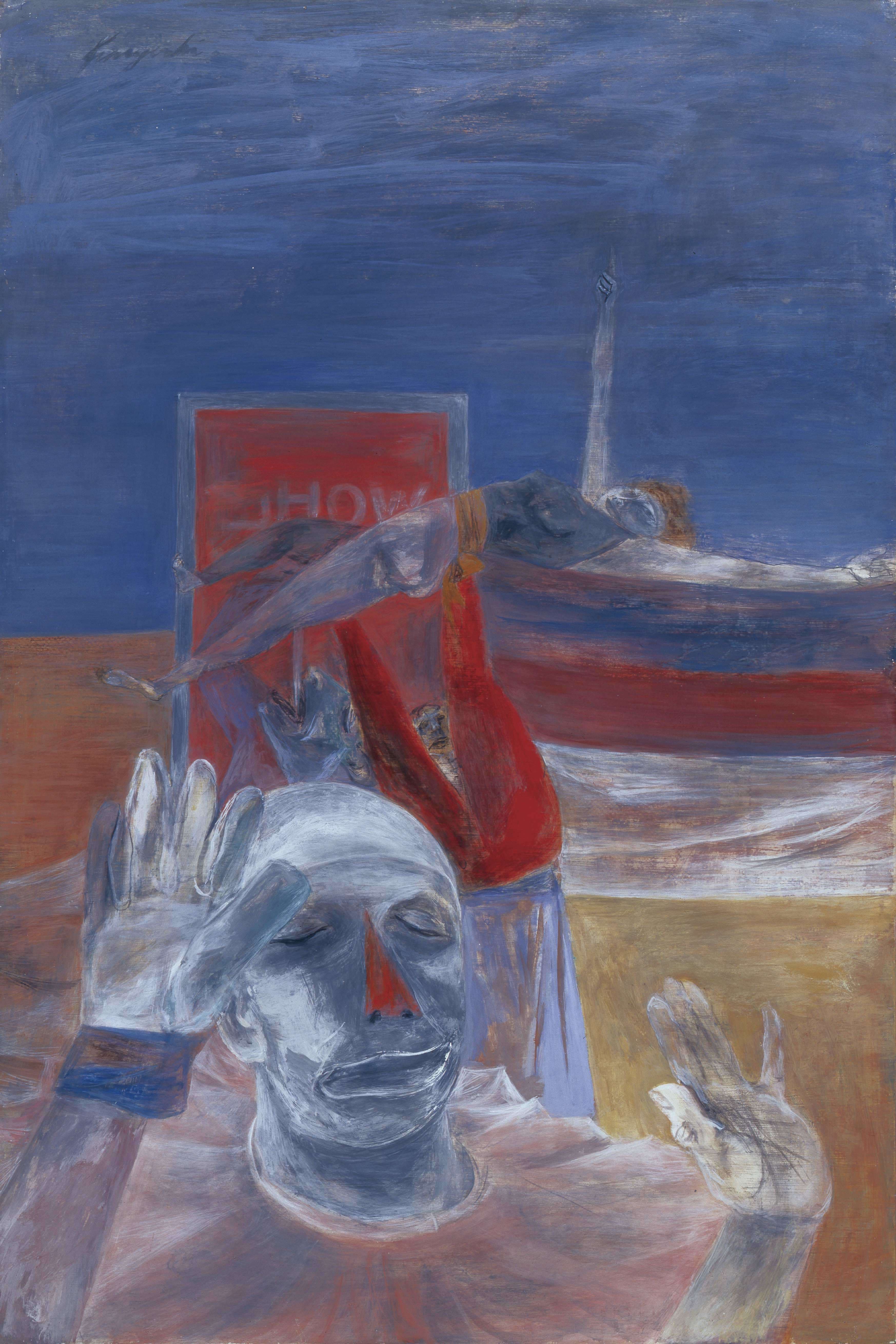 国吉康雄は1940年代後半に作品のモチーフとして、道化の「仮面」を頻繁に描いています。また、1931年に日本に帰国した際、岡山からアメリカに持ち帰ったとされる「鯉のぼり」を作品中に描いています。私たちは、この国吉が描いた「仮面」と「鯉のぼり」を、哲西町の地域資源の一つである、「神楽面」と「鯉」に関連づけることとしました。