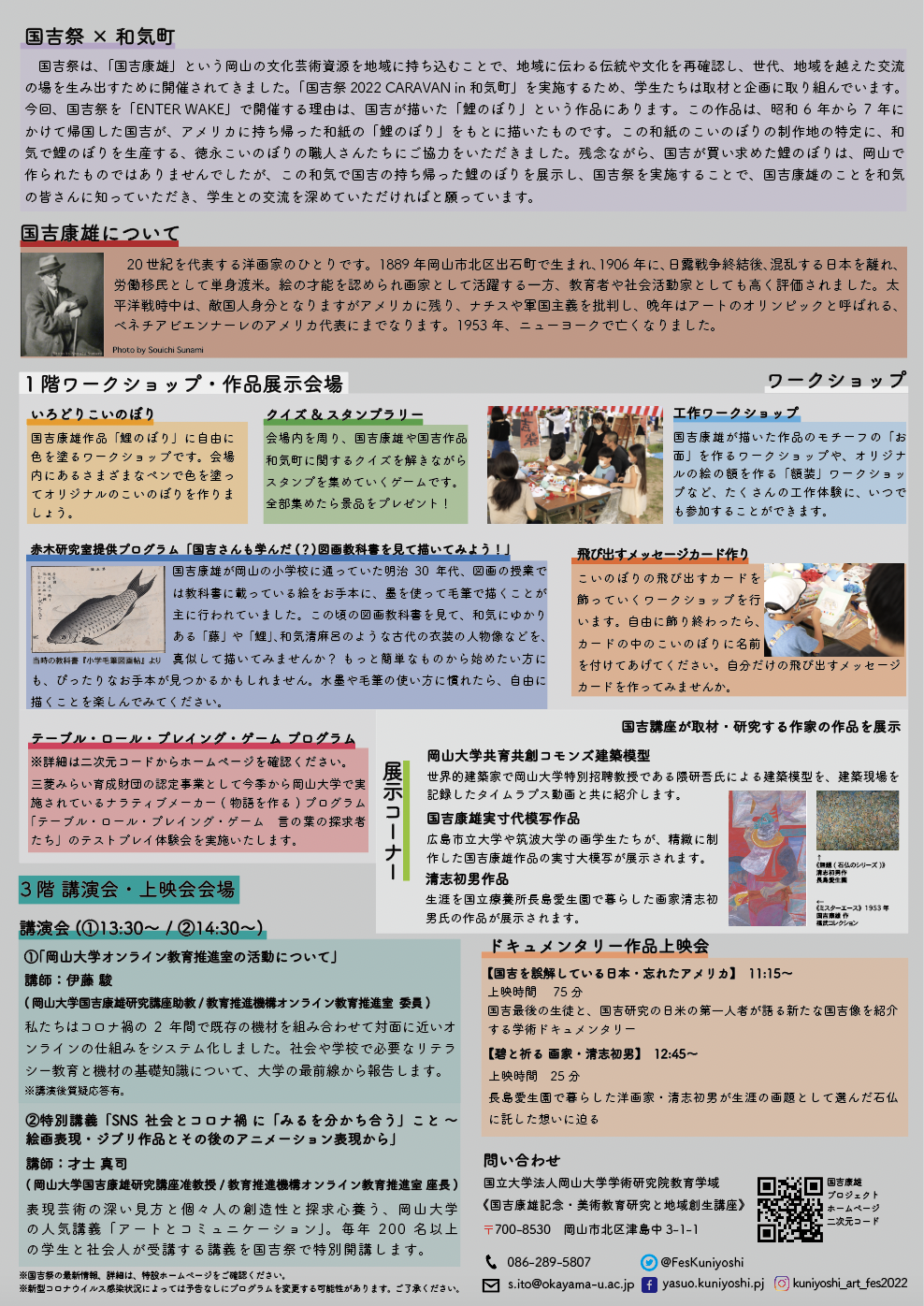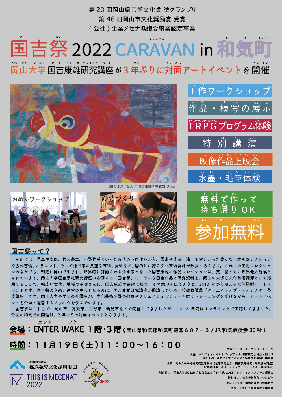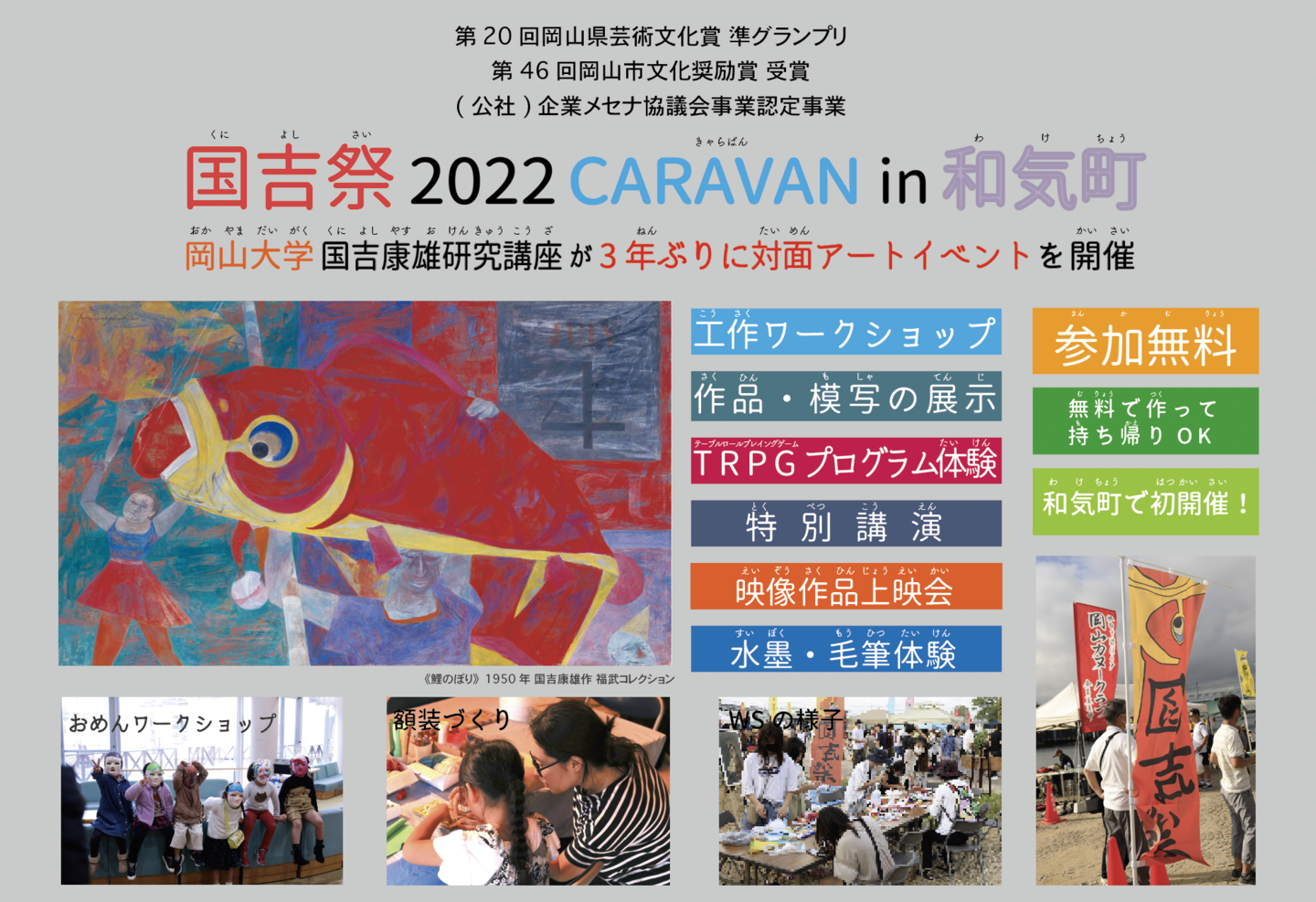 国吉祭は、「国吉康雄」という岡山の文化芸術資源を地域に持ち込むことで、地域に伝わる伝統や文化を再確認し、世代、地域を越えた交流の場を生み出すために開催されてきました。「国吉祭2022 CARAVAN in 和気」を実施するため、学生たちは取材と企画に取り組んでいます。